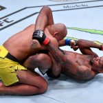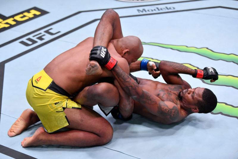 ジャカレイ戦、ハイガードでロックし下からヒジを叩き込むホランド(右)(getty/Zuffa LLC/UFC)