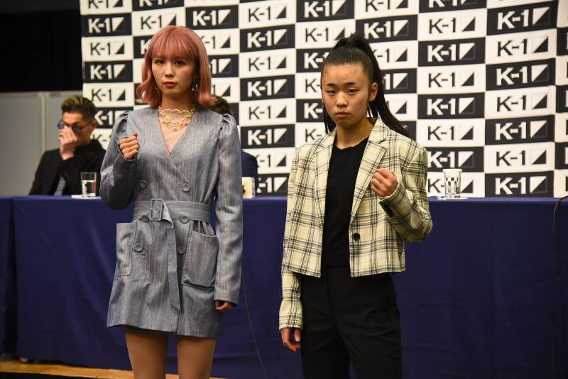 Krush新女王としてK-1初参戦の菅原(左)と超新星のNOZOMI(右)