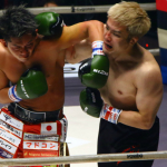 昨年大晦日のRIZINで、五味隆典(右)と打ち合う皇治
