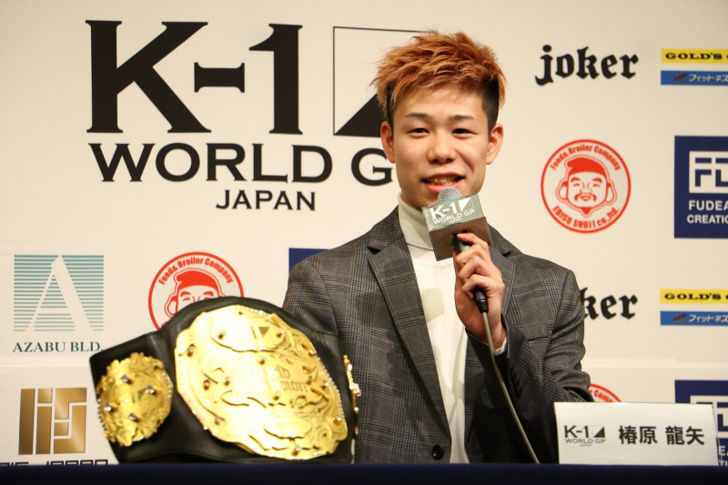 一夜明け会見で笑顔で語る椿原龍矢(C)K-1