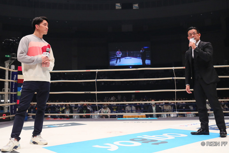 榊原代表とともにリングに上がり、バンタム級GPに参戦表明した朝倉海