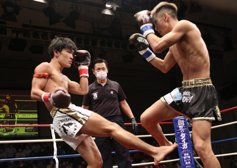 白幡(右)にローキックを放つ濱田