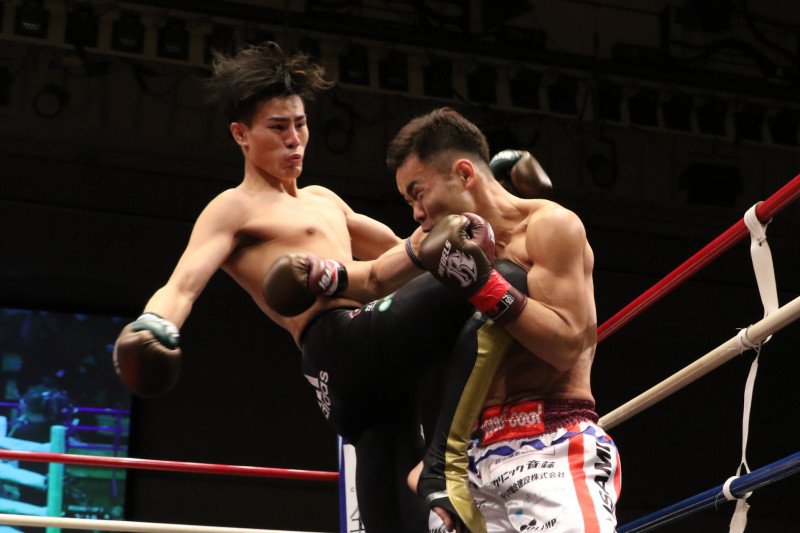 海人の強烈なヒザ蹴りが日菜太を強襲