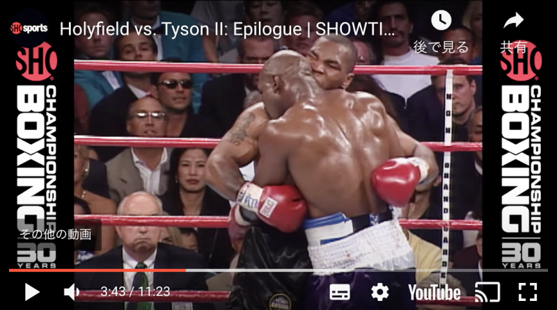 ホリフィールドの耳を噛むタイソン=97年6月(SHOWTIME Sports YouTubeより)