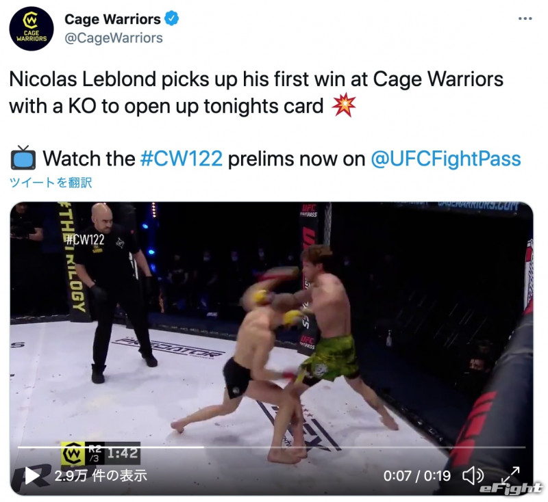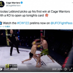 戦慄のKO劇!倒れた選手が“首振り人形”状態に(Cage Warriors公式SNSより)