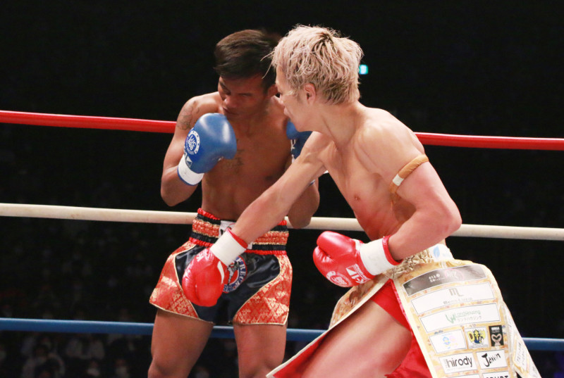 強烈な連打を浴びせKO勝利する武尊=昨年3月のペッダム戦