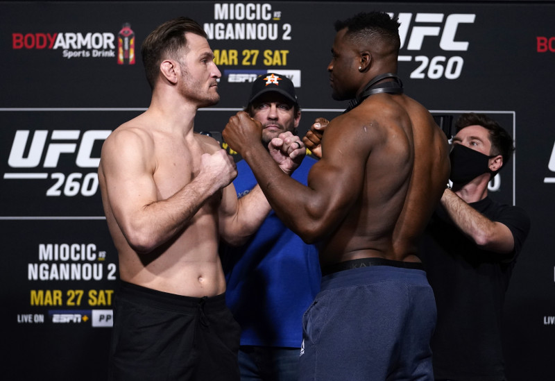 フェイスオフする王者ミオシッチ(左)と挑戦者ガヌー(右)(©Getty Images/UFC)