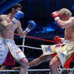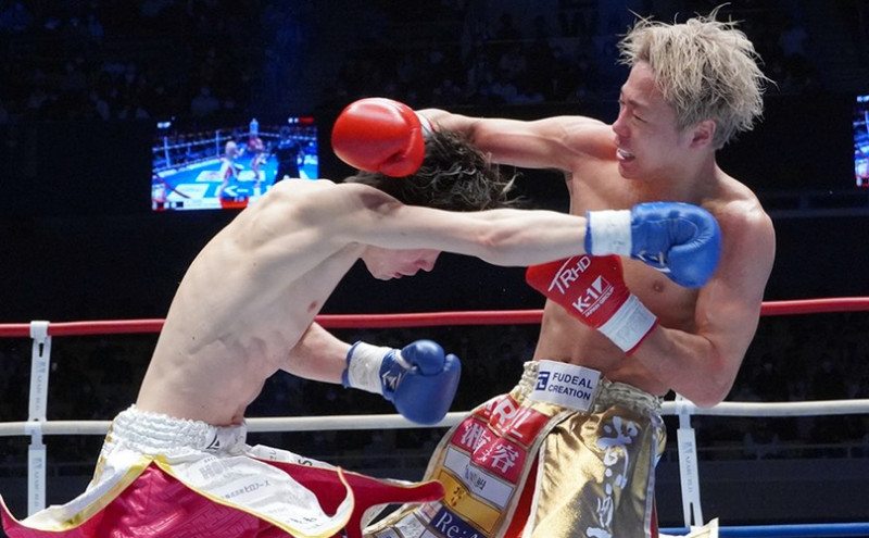 壮絶な打ち合いをするレオナ(左)と武尊(右)