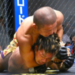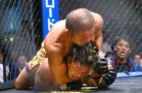 修斗世界2位・ランボー宏輔をチョークで絞め上げる安谷屋=16年10月