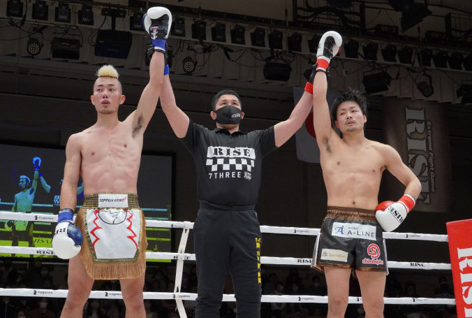今年2月のRISEで引き分けたDEEP☆KICK-63kg王者・山畑(右)と大石(左)がベルトをかけて再戦する