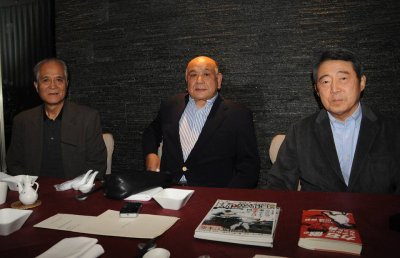 今から約3ヶ月前、昨年12月下旬に発売された『Fight&Life 2021年2月号』に掲載の写真。昨年10月中旬、東氏の企画で対談が行われた。左から山崎照朝、佐藤勝昭、東孝
