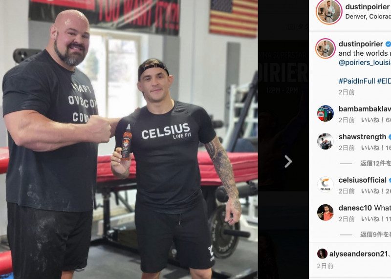 世界一の怪力男のブライアン・ショー(左)と、マクレガーをKOしたポイエー(右)のツーショット写真(ポイエーのSNSより)