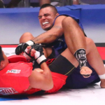 巌流島で一本勝ちする田村潔司(左/2015年7月)