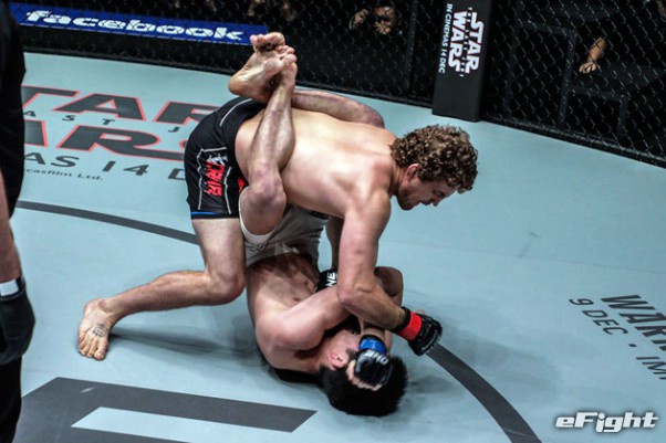 寝技に持ち込もうとした青木真也に上からパウンドを見舞うアスクレン=17年11月
