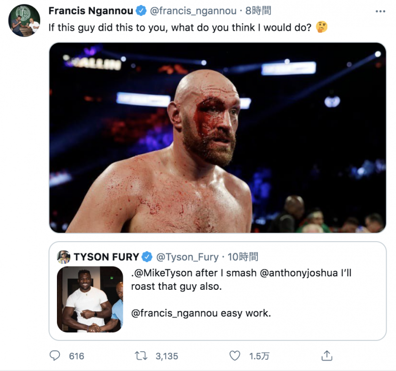 フューリーの血まみれ写真を掲載し挑発するガヌー「もし俺と戦ったらどうなると思うんだ」(@francis_ngannouより)
