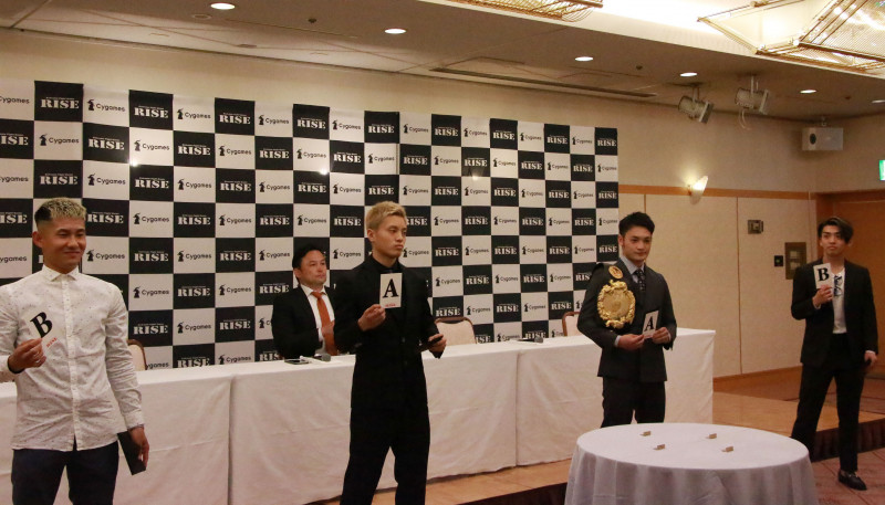 抽選で引いたカードを手にする4人