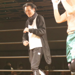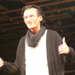 ブルース・リーのような構えでステップを踏んでみせる大沢樹生