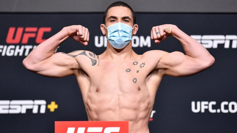 仕上がっ身体でマッスルポーズを決める元UFCミドル級王者ウィテカー(UFC公式YouTubeチャンネル映像サムネイルより)