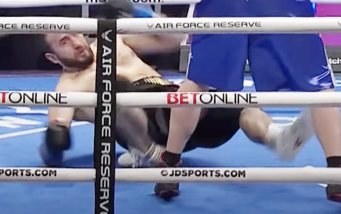 足先が反対側に向きながら倒れる痛々しいシーン(C)DAZN