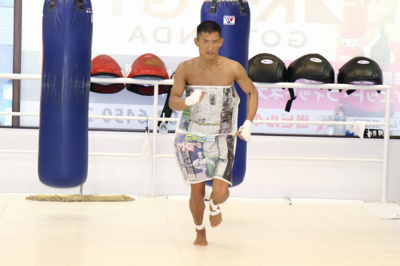 新聞が落ちないよう必死に走る堀井 (C)K-1