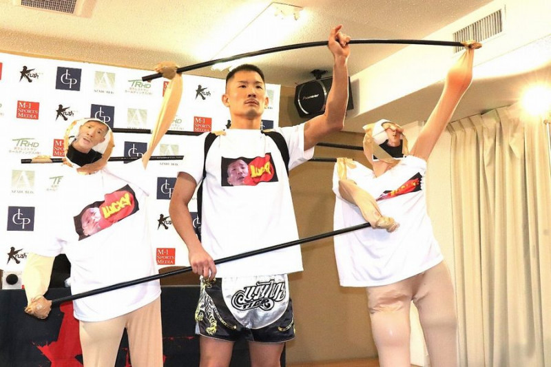 里見が「ちょっとイラッとしました」という会見時の堀井翼のパフォーマンス(C)K-1