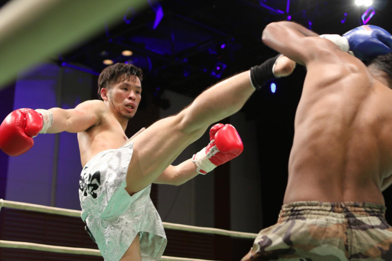 ハイキックを放つ国崇
