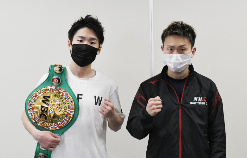 王者・寺地拳四朗(左)と挑戦者・久田哲也が調印式に挑んだ