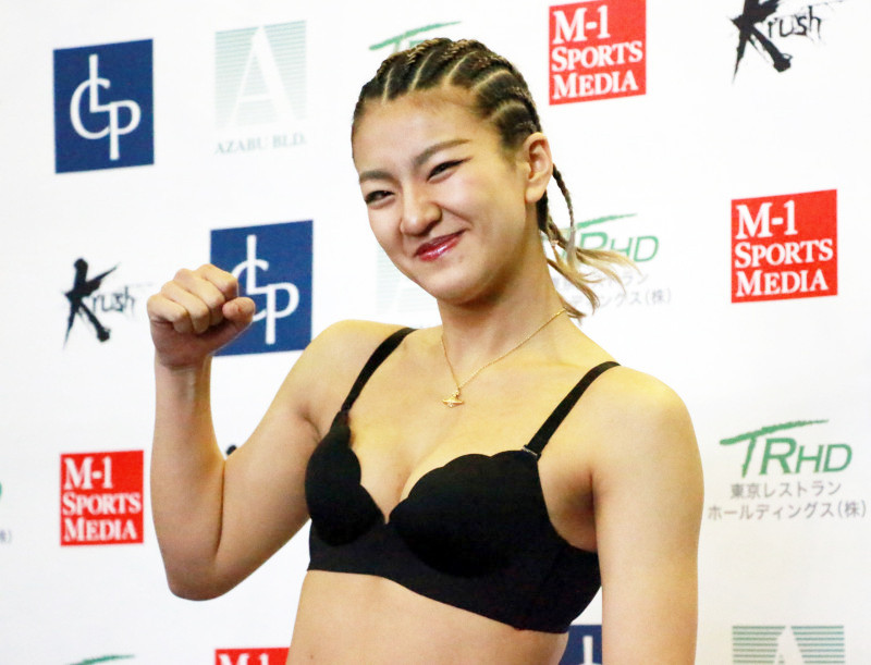 黒のブラで計量に挑み可愛くポーズを決めた真優