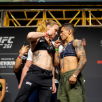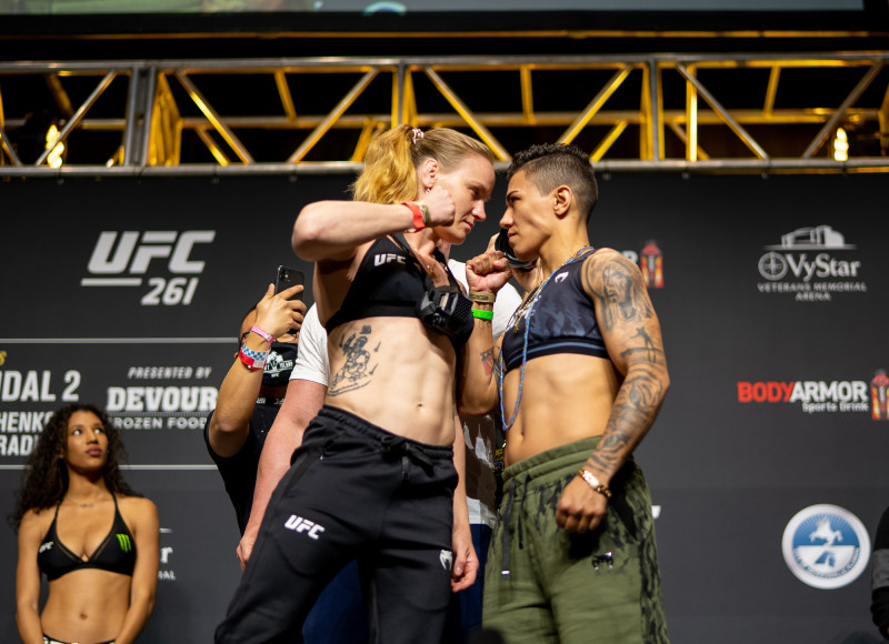 激突する女王シェフチェンコ(左)とアンドラージ(右)(©Getty Images/UFC)