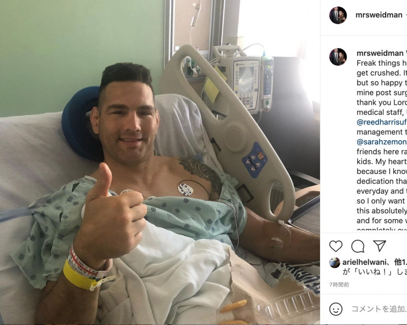 術後に笑顔を見せるワイドマン(ワイドマン妻のSNSより)