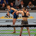 僅か47秒で王座を失い茫然自失のジャン(左奥)王座奪還に感涙のナマユナス(右手前)(©Getty Images/UFC)