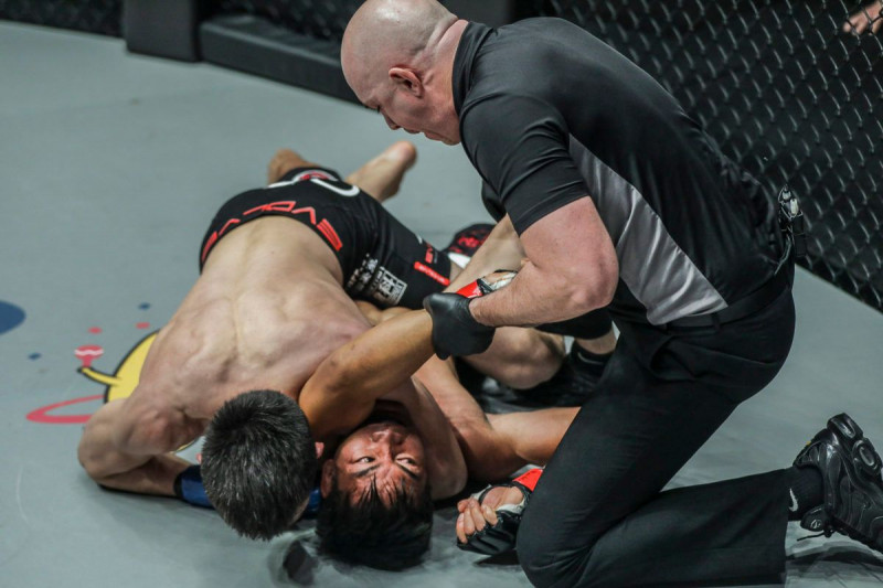 フォラヤンと2度目の対戦で上から肩固めを極める青木 (c)ONE Championship