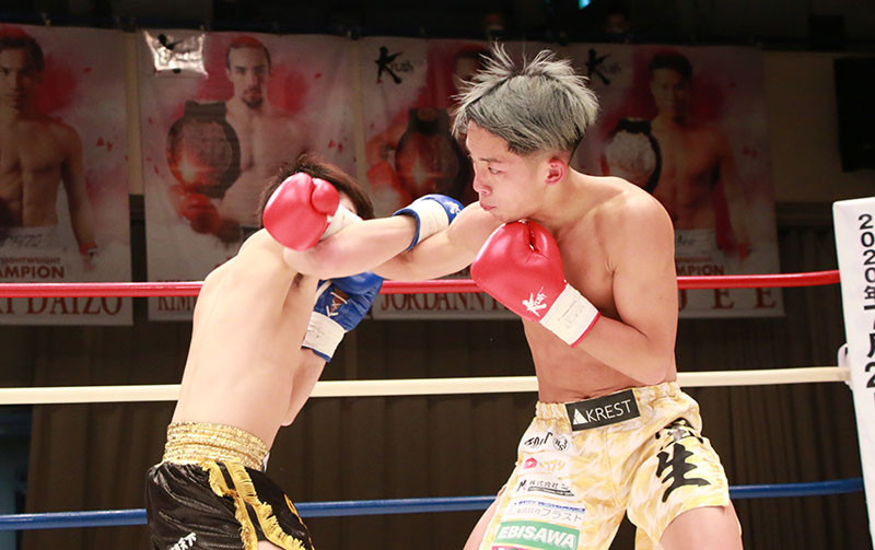 プロ初勝利をKOで飾った際の橋本(右/2020年3月)