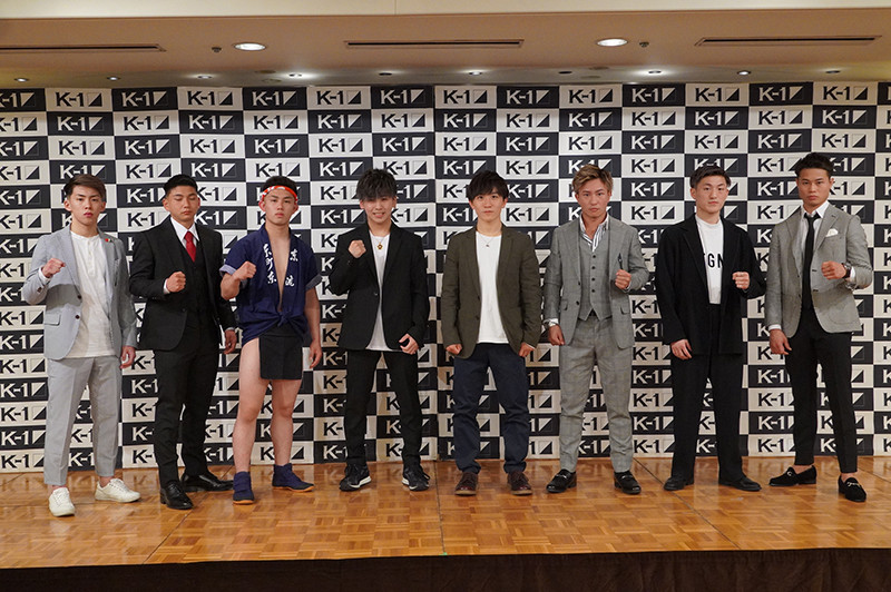 バンタム級トーナメント参加者(左から)橋本、大村、壬生狼、野田、松本、鵜澤、黒田、池田