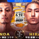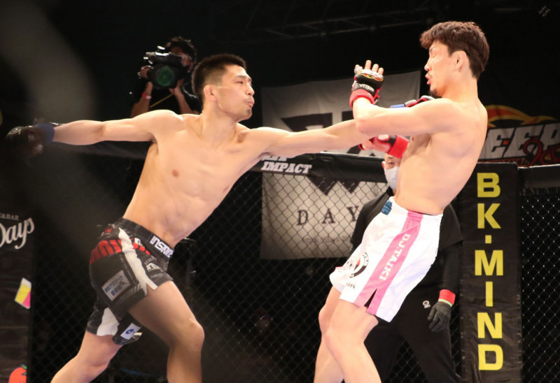 神田(左)が長いリーチを活かしたパンチを繰り出す