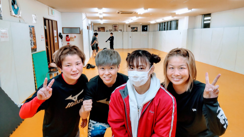 中井りん(中央)と練習した浅倉カンナ(右)パラエストラ柏にて=中井りんTwitter提供