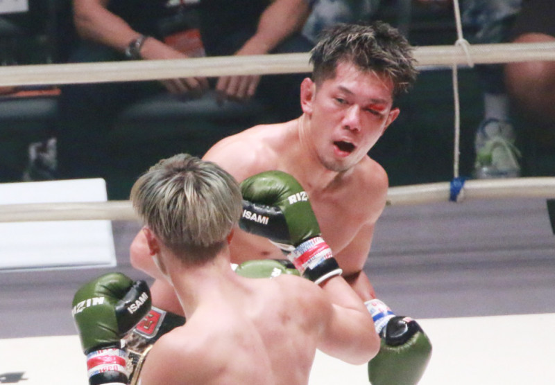 RIZINデビュー戦の皇治、顔が腫れ出血も、那須川天心にゾンビのように向かう