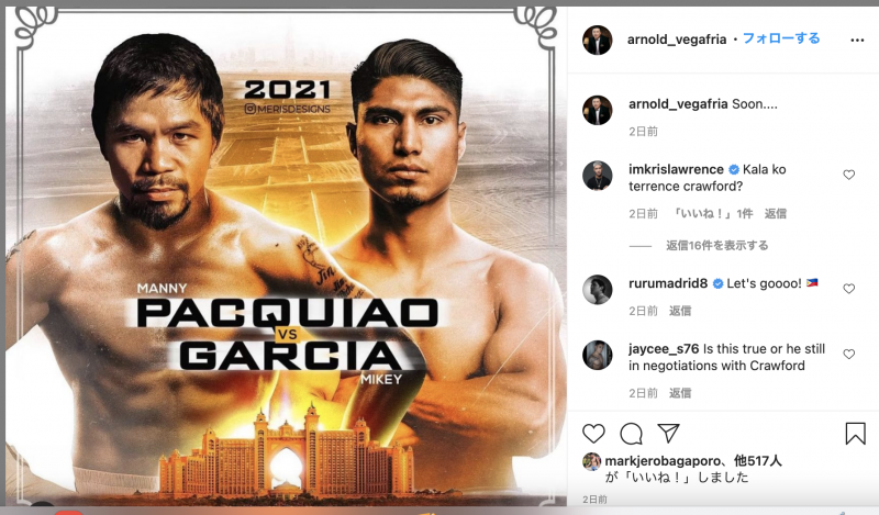 新たにパッキャオvsマイキー・ガルシアのポスター画像が作られた(@arnold_vegafriaより)
