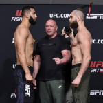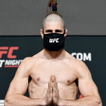 奇抜な髪型で計量に挑み、合掌するプロハースカ=UFCYouTubeのサムネイルより