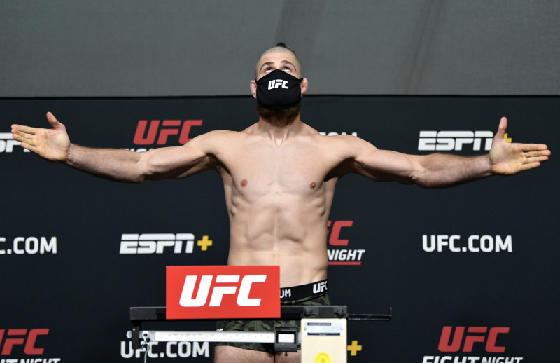 計量パスで両手を広げるポーズのプロハースカ(©Getty Images/UFC)