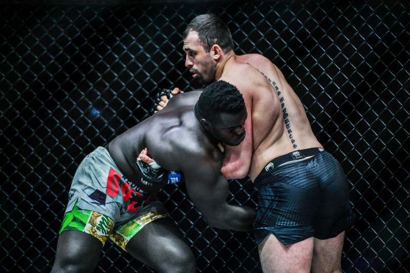 セネガル相撲の組みに、グレコの王者(右)はうまくコントロール©️ONE Championship