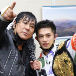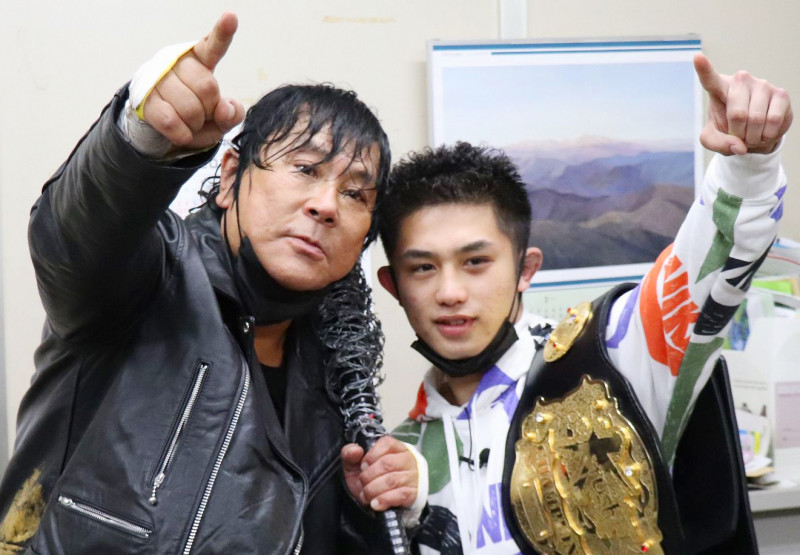 大仁田厚(左)と対面したKrushバンタム級王者・壬生狼一輝(C)K-1