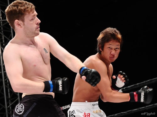 リングスUK所属のムサシ(イギリス)を吹っ飛ばすフックでKOした朝倉未来