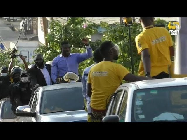 ガヌーが母国カメルーンに凱旋帰国(Africanews映像サムネイルより)