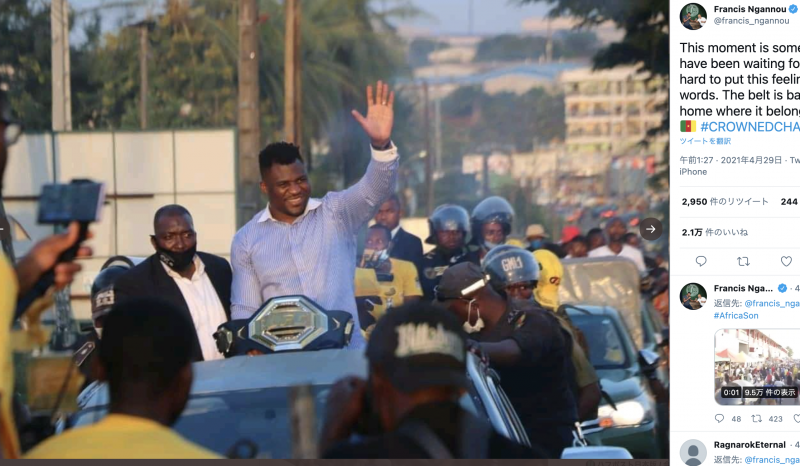 ガヌーが母国カメルーンに凱旋帰国(@francis_ngannou より)
