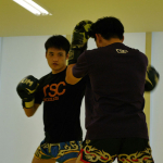 兄・一貴(右)と共にスパーリングを披露した大﨑孔稀(C)RISE