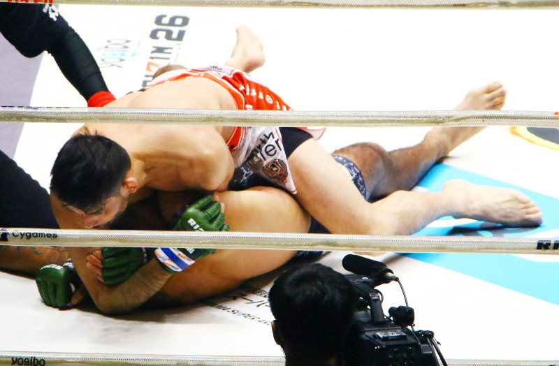 昨年大みそか、山本美憂の夫アグォンを締め上げ一本勝ちするクレベル