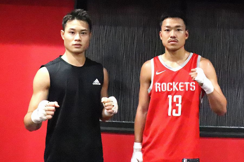 池田(左)と芦澤(右)が公開練習でスパーリングを披露(c)K-1