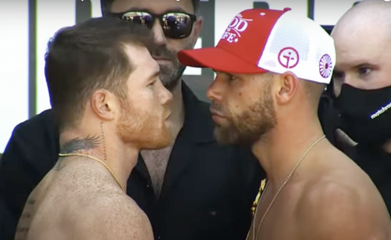 カネロとサンダースの3団体統一戦前日、緊迫のフェイスオフ(c)DAZN