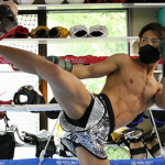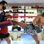 鋭いハイキックを繰り出すMOMOTARO(C)K-1
